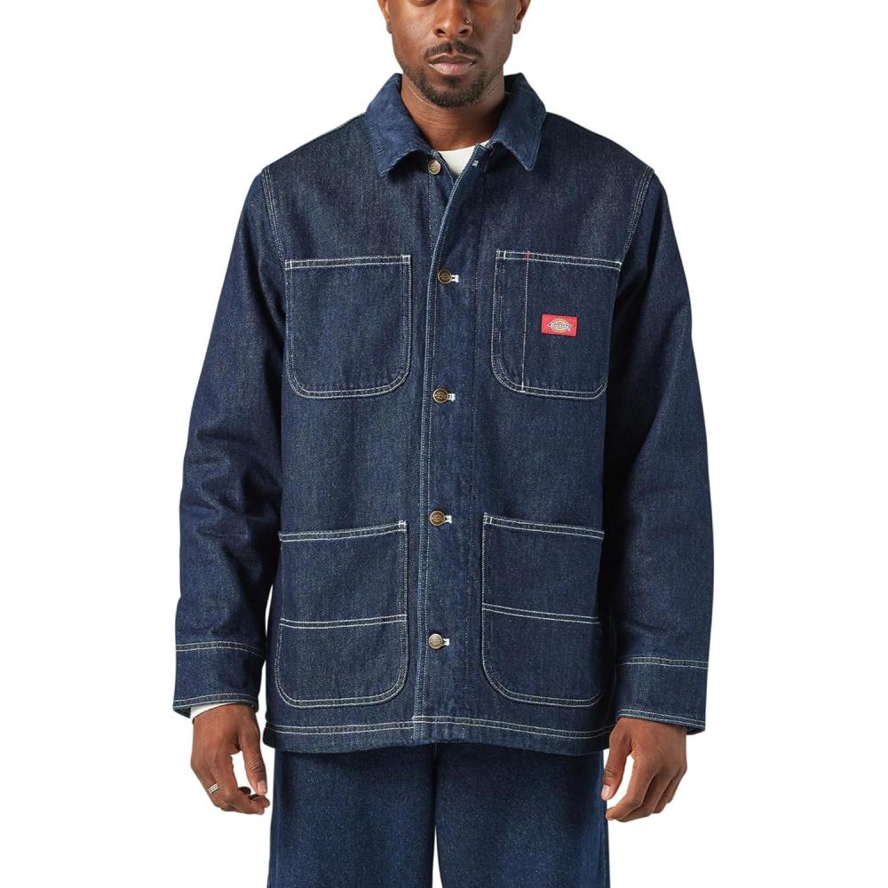 Dickies Men’s Blanket Lined Denim Chore Coat(Rinsed Indigo Blue)