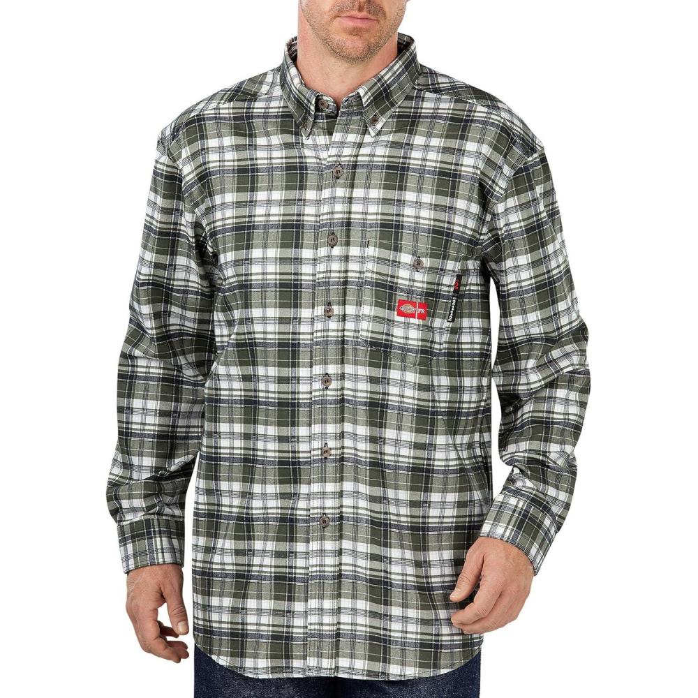 Dickies Men’s Big Flame-Resistant Long Sleeve Plaid Shirt Big(White/Grape Leaf Plaid)
