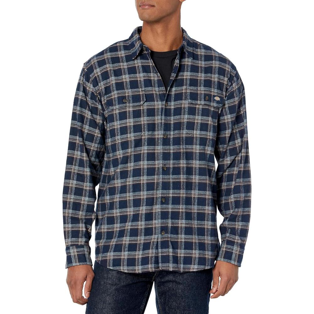Dickies Mens L/S Flex Flannel Shirt(Ink Navy/Chocolate Brown/Clear Blue Unbalanced)