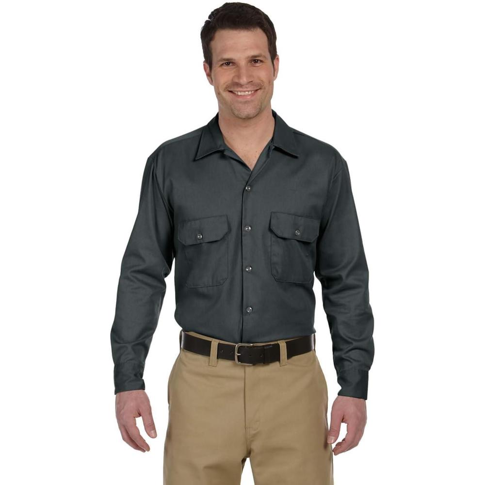 Dickies Mens Long Sleeve Flex Twill Work Shirt(Charcoal V1)