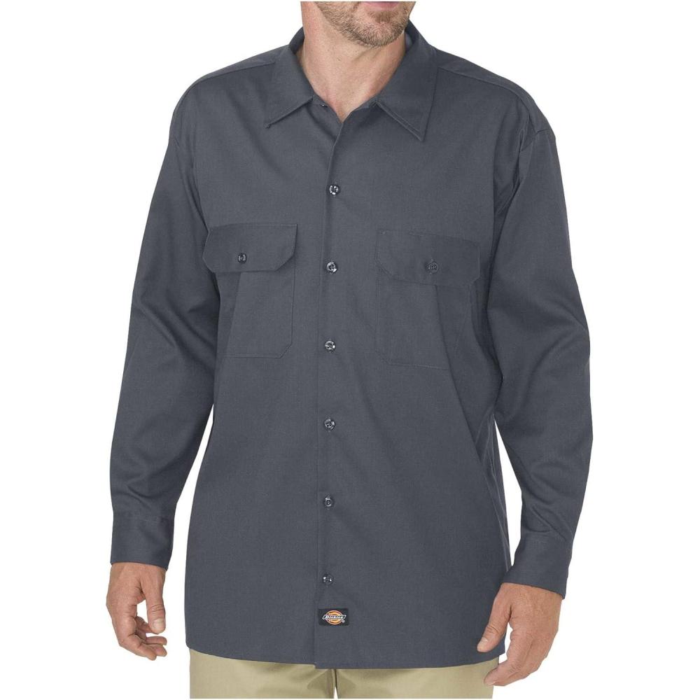 Dickies Mens Long Sleeve Flex Twill Work Shirt(Charcoal)