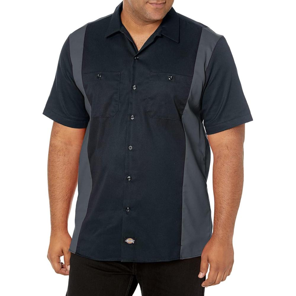 Dickies Men’s Short-Sleeve Two-Tone Work Shirt(Black/Charcoal V1)