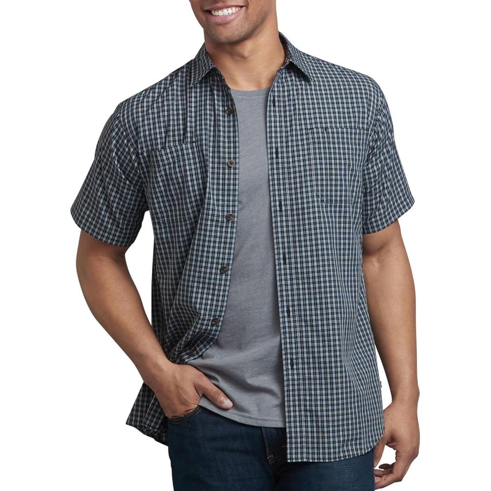 Dickies Men’s Yarn Dyed Plaid Short Sleeve Shirt(Black/Blue/Grey Check)